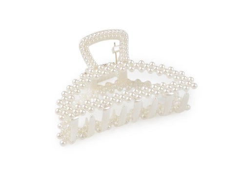 Skřipec do vlasů s perlovým designem vytvoří poutavý slavnostní účes během chvilky. Drží přesně na místě díky svému silnému stisku a dlouhým zubů. Má lesklý [perleťový povrch.]