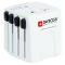 Univerzální adaptér pro 150 zemí světa Jen pro 2-pólové neuzemněné přívodní šňůry bez ochranného kolíku, max. 2.5A (Euro vidlice Typ-C) Originální řešení výsuvných kolíků Bezpečnostní tlačítko pro zajištění polohya pro vytažení ze zásuvky Výměnná pojistka proti přepětí, není převodníkem napětí Ochranné dětské pojistky v zásuvce Švýcarská kvalita a design Barva: bílá