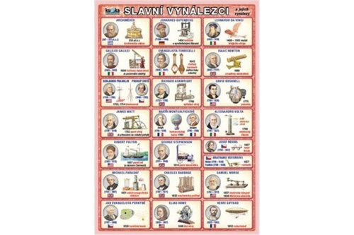 Titul obsahuje přehled 49 slavných vynálezců včetně jejich portrétů a zobrazení jejich nejvýznamnějších vynálezů. Pro úplnost nechybí data vynálezů, národnost a data narození a úmrtí vynálezců.