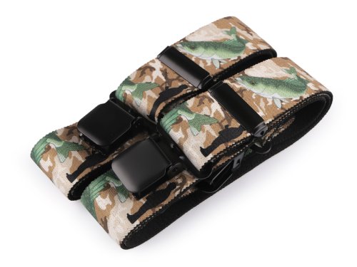 Kšandy s rybím potiskem potěší všechny rybáře. Kšandy bývají nedílnou a zároveň praktickou součástí jejich oblečení. Jsou kvalitní české výroby, elastický materiál umožňuje pohodlné nošení. Zadní vsadka z eko kůže jim dodává stylový vzhled. Ke kalhotám se upevňují na tři žabky - dvě vpředu a jednu vzadu.