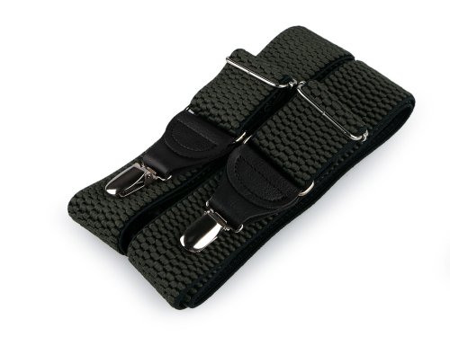 Pánské pruhované šle jsou kvalitní české výroby. Jejich elastický materiál umožňuje pohodlné nošení. Žabky jsou zvýrazněné propracovanými detaily z eko kůže, které jim dodávají stylový vzhled. Ke kalhotám se šle upevňují na 4 žabky - dvě vpředu a dvě vzadu. Délku si můžete nastavit. Dají se použít jak pro denní nošení, tak jsou vhodné i k lyžařským a jiným sportovním kalhotám.