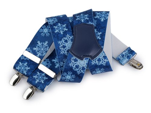 Kšandy s potiskem vánočních motivů potěší všechny milovníky adventních svátků. Užijete si s nimi spoustu legrace při rodinném focení, na vánoční párty i na silvestra. Jsou kvalitní české výroby, elastický materiál umožňuje pohodlné nošení. Zadní vsadka z eko kůže jim dodává stylový vzhled. Ke kalhotám se upevňují na tři žabky - dvě vpředu a jednu vzadu. [Žabky mají uvnitř gumový povrch, který zabrání ničení kalhot.]