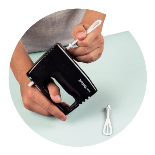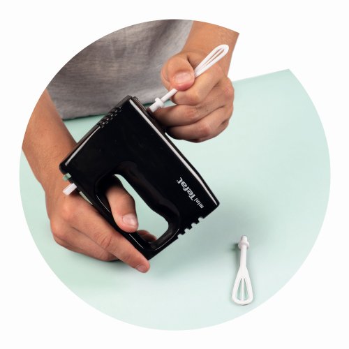Věrná replika ručního šlehače mini Tefal je ideální do každé kuchyňky při přípravě oběda nebo při pečení. Metličky se točí mechanicky stlačením tlačítka. Výrobek nevyžaduje baterie. Rozměry (DxŠxV): 11 x 5 x 17 cm.