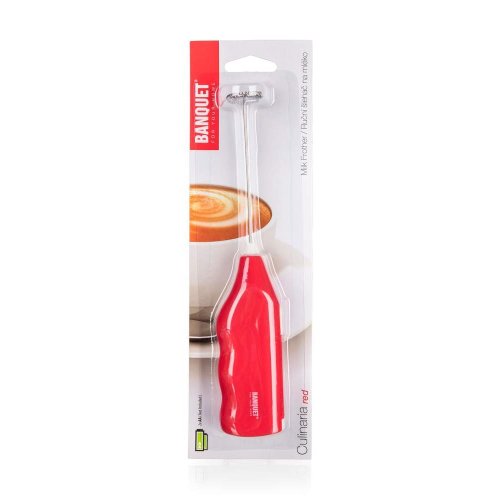 Ruční šlehač na mléko CULINARIA Red má rukojeť vyrobenou z plastu (ABS) v krémové barvě, šlehací část je z nerezové oceli 18/8.