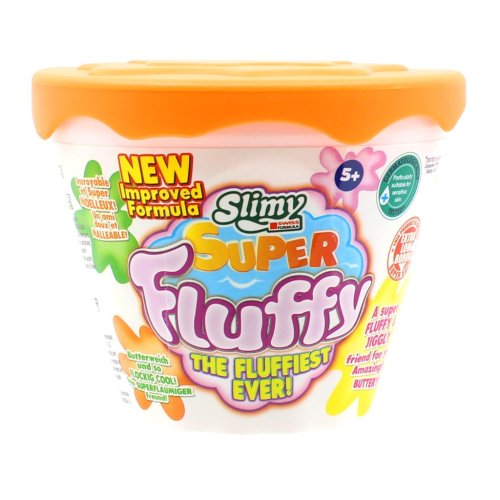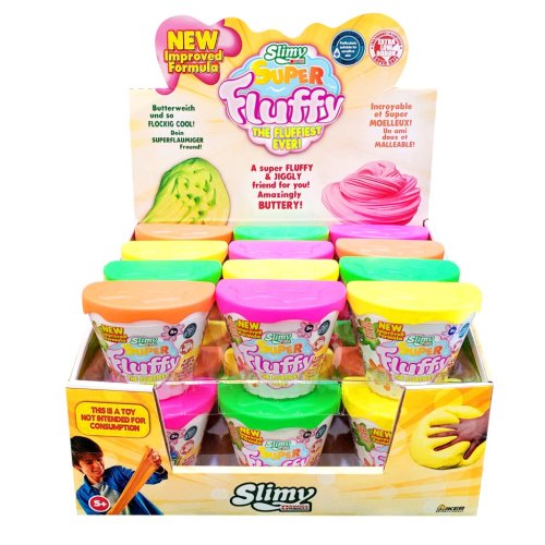 Slimy Super Fluffy je kelímek plný hedvábně jemného slizu. Fluffy slime je tak hebký, jemný, je prostě cool. Slimy – je to nejenom zábava, tradice, široký výběr produktů, ale je to především bezpečnost a švýcarská kvalita. Všechny výrobky jsou dermatologicky testované pro citlivou a atopickou pokožku. Všechny použité složky jsou přírodní, bezpečné a splňují všechny mezinárodní normy. Při výrobě nebylo použito žádných parabenů. Pro děti od 3 let.