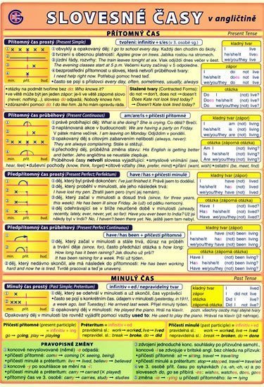Přehled základních slovesných časů v angličtině včetně tvoření trpného rodu. Užití jednotlivých časů včetně příkladů a názorných ilustrací.Obsahuje pravopisné změny při tvoření slovesných tvarů, tabulku tvoření trpného rodu.