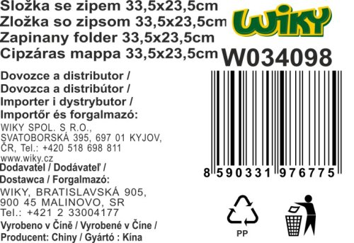 Složka se zipem 33,5x23,5 cm.