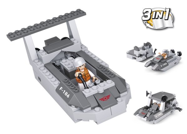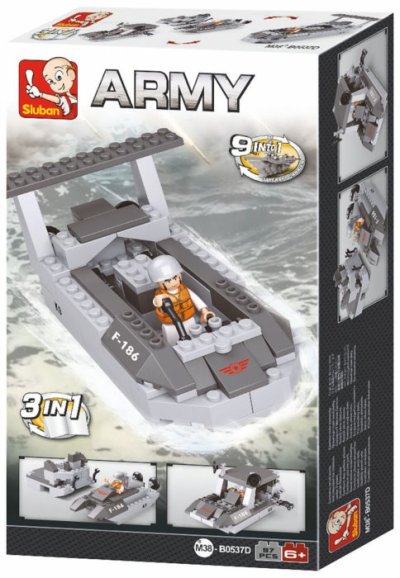 Ministavebnice vojenské techniky ze série Army 9into1, jejíž kompletací vznikne možnost sestavit velký ucelený model letadlové lodě. Inovativní stavebnice Sluban je možno kombinovat s podobnými stavebnicemi mnoha dalších významných výrobců. Jsou vyráběny z kvalitního, nezávadného a odolného ABS plastu. Každá stavebnice je opatřena návodem k sestavení a balena v pestře potištěné papírové krabičce. Hlavní vlastnosti:97 dílků, 1 figurkanízká obtížnost3 varianty sestaveníkompletací série lze sestavit velký modelinovativní figurky s otáčivými i výkyvnými částmi tělkompatibilní se stavebnicemi dalších výrobců