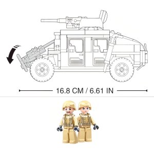 Model dobře známého vojenského vozidla s výzbrojí a dvěma mini figurkami. Hlavní vlastnosti: rozvíjí logické myšlení a jemnou motoriku dětíkompatibilita: s Lego, Cobi, Mega Blokskvalitní pevný materiál