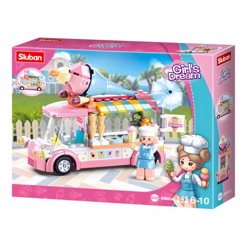 Pistáciová, borůvková, nebo třeba pomerančová zmrzlina. Zmrzlinový vůz se zmrzlinářem nesmí chybět v žádném městečku. Ani Girls Dream není výjimkou. Inovativní stavebnice Sluban je možno kombinovat s podobnými stavebnicemi mnoha dalších významných výrobců. Jsou vyráběny z kvalitního, nezávadného a odolného ABS plastu. Každá stavebnice je opatřena návodem k sestavení a balena v pestře potištěné papírové krabičce. Hlavní vlastnosti: 145 dílků, 1 figurkanízká obtížnostinovativní figurky s otáčivými i výkyvnými částmi tělkompatibilní se stavebnicemi dalších výrobců