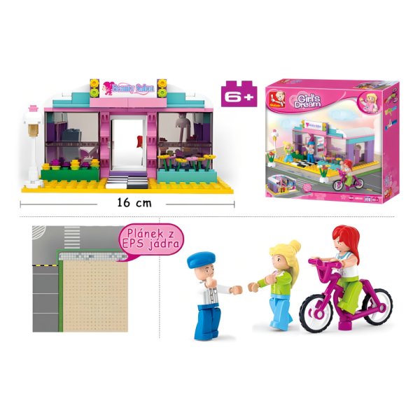 Pro dámy – po práci k odpočinku, nebo po ránu jako příjemný start nového dne je salón krásy. Náš zkušený vizážista se o Vás postará. Budete se cítit jako opravdová filmová hvězda. Inovativní stavebnice Sluban je možno kombinovat s podobnými stavebnicemi mnoha dalších významných výrobců. Jsou vyráběny z kvalitního, nezávadného a odolného ABS plastu. Každá stavebnice je opatřena návodem k sestavení a balena v pestře potištěné papírové krabičce. Hlavní vlastnosti:243 dílků, 3 figurky a podložkastřední obtížnostinovativní figurky s otáčivými i výkyvnými částmi tělkompatibilní se stavebnicemi dalších výrobců
