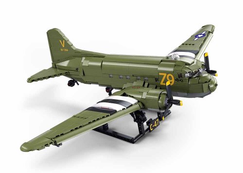Tato detailní stavebnice od značky Sluban představuje velké vojenské dopravní letadlo v klasickém olivově zeleném provedení. Model je navržen tak, aby nabídl jak realistický vzhled, tak i spoustu herních prvků, díky nimž si děti mohou vytvářet své vlastní akční příběhy. Letadlo má charakteristický dvoumotorový design s širokým trupem a propracovanými křídly. Otevírací části umožňují přístup do kokpitu i do zadní nákladové sekce, kde mohou minifigurky a vybavení simulovat výsadkové operace. Nechybí ani funkční podvozek a otočné vrtule. Součástí setu jsou také minifigurky vojáků s příslušenstvím, které obohacují hru o další možnosti. Vybavení jako bedny, zbraně a výstroj zvyšují celkovou herní hodnotu stavebnice.Inovativní stavebnice Sluban je možno kombinovat s podobnými stavebnicemi mnoha dalších významných výrobců. Jsou vyráběny z kvalitního, nezávadného a odolného ABS plastu. Každá stavebnice je opatřena návodem k sestavení a balena v pestře potištěné papírové krabičce. Hlavní vlastnosti: vojenské dopravní letadlo inspirované klasickými armádními strojidetailní zpracování trupu, kokpitu a motorových částíotevíratelné části – přístup do kokpitu i nákladového prostorusoučástí jsou minifigurky a tematické příslušenstvíkompatibilní s jinými stavebnicemiotočné vrtule a výsuvný podvozekperfektní pro malé stavitele i sběratele vojenské techniky