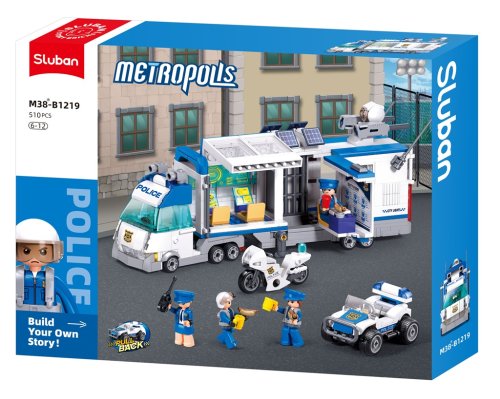 Policejní kamion je připraven vyjet do terénu a veze s sebou vše potřebné včetně policejního motocyklu a čtyřkolky. Zločinci nemají žádnou šanci! Inovativní stavebnice Sluban je možno kombinovat s podobnými stavebnicemi mnoha dalších významných výrobců. Jsou vyráběny z kvalitního, nezávadného a odolného ABS plastu. Každá stavebnice je opatřena návodem k sestavení a balena v pestře potištěné papírové krabičce. Hlavní vlastnosti: 510 dílků, 4 figurkyinovativní figurky s otáčivými i výkyvnými částmi tělkompatibilní se stavebnicemi dalších výrobců