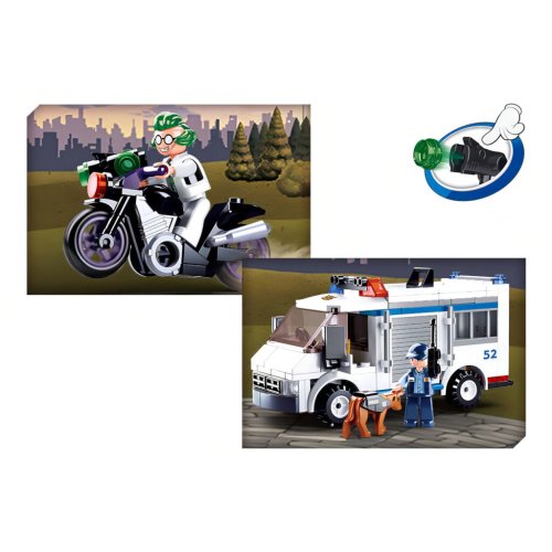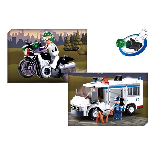 Model vězeňského vozu a motorky ze série Sluban Police.