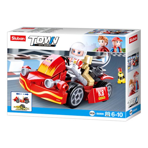 Inovativní stavebnice Sluban je možno kombinovat s podobnými stavebnicemi mnoha dalších významných výrobců. Jsou vyráběny z kvalitního, nezávadného a odolného ABS plastu. Každá stavebnice je opatřena návodem k sestavení a balena v pestře potištěné papírové krabičce. Hlavní vlastnosti:89 dílků, 1 figurkanízká obtížnostnatahovací pohoninovativní figurky s otáčivými i výkyvnými částmi tělkompatibilní se stavebnicemi dalších výrobců