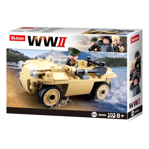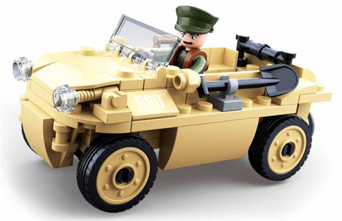 Model německého obojživelného vozu Schwimmwagen ze série Sluban World War II.