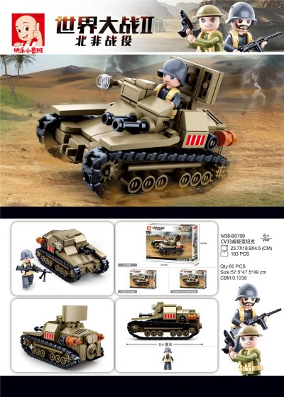 Lehce ozbrojené nepřátele snadno dostihněte tímto malým rychlým tankem. Stavebnice se skládá z tanku a figurky vojáka. Hlavní vlastnosti: 183 dílků, 1 figurkanetoxický a odolný ABS plastkompatibilní s Lego, Cobi, Mega Bloks