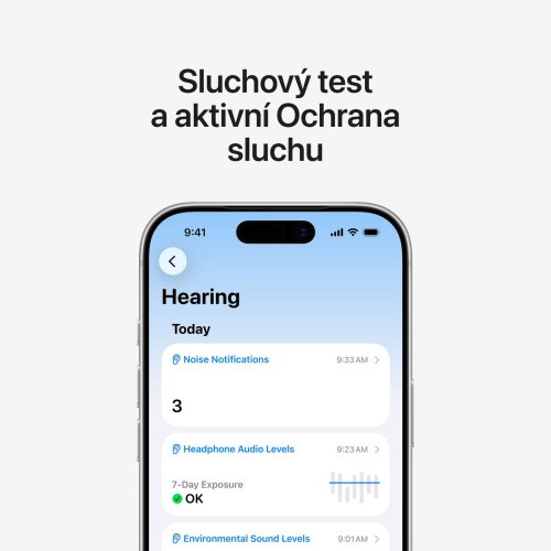 Díky snímači tepové frekvence můžete pohodlně sledovat svou kondici i při náročném tréninku. Funkce Ochrana sluchu automaticky reguluje hlasité zvuky z okolí a sluchový test v aplikaci vám pomůže zjistit, jak na tom váš sluch skutečně je.