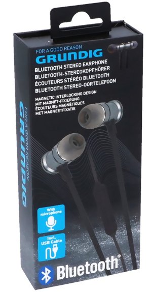Bezdrátová svoboda! Tato Bluetooth sluchátka do uší od Grundig jsou dokonalým společníkem při tréninku. Bezpečně a pohodlně visí na krku a nepřekáží při pohybu ani jiných činnostech. Ponořte se do pozoruhodných zvuků při běhu, lezení a mnoha dalších sportech. Ovládací prvky na kabelu headsetu umožňují nastavit hlasitost, přijímat a ukončovat hovory. Vlastnosti: - Hliníková sluchátka s magnetickou fixací - Vestavěný mikrofon a hands-free systém - Integrované ovládací prvky - Bezpečné a pohodlné v uchu nebo zavěšení na krku - Funkce Bluetooth - Včetně USB kabelu Technické údaje: - Provedení: V -ucho - Provozní napětí: vestavěná lithium-iontová baterie 55 mAh - Verze Bluetooth: 5.0 - Frekvenční rozsah: 2,4…2,48 GHz - Dosah: cca 10 m - Doba přehrávání: 5 h - Doba hovoru: 5 h - Doba nabíjení : 2 h - Barva: černá Rozsah dodávky: - 1x sluchátka do uší - 1x USB nabíjecí kabel - 2x páry silikonových náušníků - 1x návod k použití Funkce produktu: Bluetooth 4.2 konektivita Ovládání hlasitosti Příjem hovorůBAURTMIKROPHONEnakabeluDobaakce 3hnabíjení přes USB