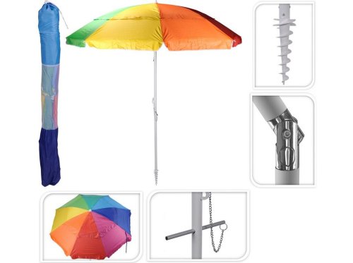 Slunečník 220 cm, s kloubem a vrutem, duhové barvy.