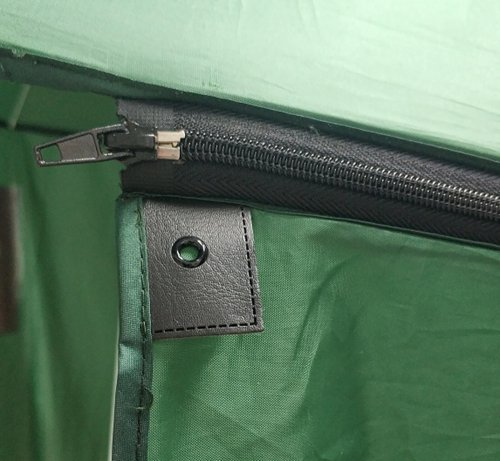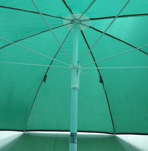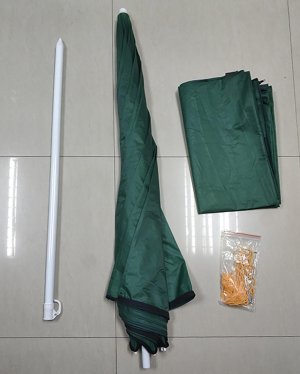 Slunečník s boční stěnou chránící proti bočnímu větru má kovovou konstrukci s 8 žebry o síle 3,8b mm v bílé barvě, potahová látka - 170T polyester. Boční stěna se dvěma praktickými okny pro snažší rozhled do stran je upevněna k horní části slunečníku oboustranným zipem pro snadnou a rychlou montáž či demontáž. Slunečník je vybaven nosnou tyčí o průměru 25 / 22 mm s naklápěcí funkcí, 8 pevnými očky, zemními kolíky a lanky, pro pevnější stabilizaci v případě nepříznivého počasí. Slunečník je dodáván v zelené barvě a je neocenitelným pomocníkem nejen pro rybáře ale díky zástěně je možno jej používat jako praktický přístřešek na pláži či na zahradě.