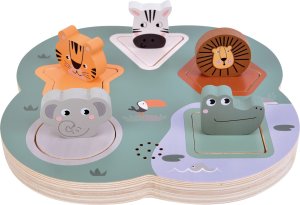 Nechejte děti rozpoznávat tvary i zvířátka a bavit se jejich roztomilými zvuky. Barevné dřevěné puzzle se zvuky promění učení v opravdové dobrodružství. Pět zvířátek - lev, tygr, slon, zebra a krokodýl - čeká, až je děti umístí na správné místo. Jakmile některé zvednou, puzzle je odmění realistickým zvukem zvířete. Kombinace hry, zvuků a barev rozvíjí vnímání, logiku i motoriku.Snadno je přitom lze napodobováním zvuků vést hravým způsobem k prvním slůvkům. Dřevěné dílky jsou velikostí i oblými tvary přizpůsobeny k manipulaci malými dětskými ručičkami, jsou příjemné na dotek, a pomáhají tak stimulovat hmat. Hlavní vlastnosti: základna s 5 dílky puzzle ve tvaru zvířatmotivující zvířecí zvukové efektyvyrobeno ze 100% certifikovaného dřeva FSC®trénuje trpělivost, vytrvalost a soustředěnítrénuje koordinaci ruka-oko2xAAA 1,5V baterie - nejsou součástí balení Značka a certifikát FSC® (Forest Stewardship Council) zaručuje, že dřevo, ze kterého byl produkt vyroben, nebylo vytěženo nelegálně a pochází z lesů obhospodařovaných šetrným či přírodě blízkým způsobem, ve kterém jsou dodržovány přísné environmentální a sociální požadavky. Značka FSC® na výrobku znamená, že svým nákupem pomáháte chránit lesy a podporujete šetrné, odpovědné či přírodě blízké hospodaření, díky kterému jsou naše lesy stabilnější, zdravější, mají přirozenou druhovou skladbu a lépe odolávají negativním následkům klimatických změn.