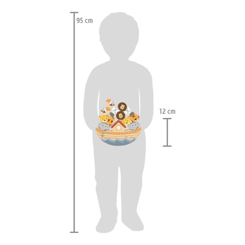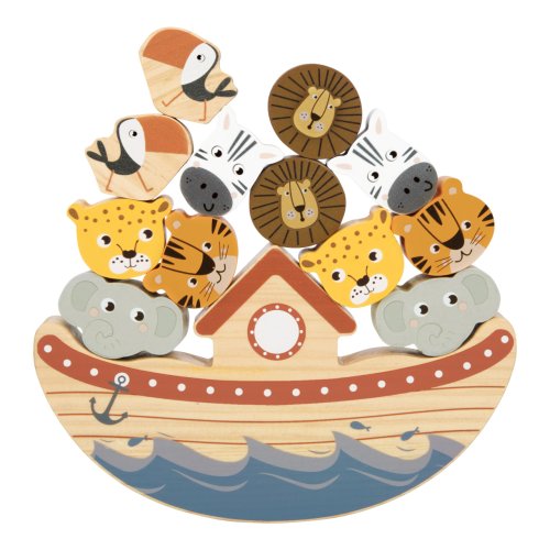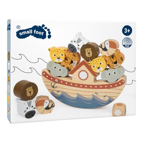 Vybalancujete vratkou archu a zachráníte před potopou všechna zvířátka? Házejte kostkou a ukládejte dílky příslušných barev s motivy roztomilých zvířat na základnu v podobě rozhoupané lodi. Rozvíjejte hrou koordinaci rukou a zraku či trpělivost. Hračka je velmi robustní a odolná, vyrobená z masivního dřeva a vyvedená v atraktivním barevném schématu produktové řady Small Foot Safari.   Hlavní vlastnosti:základna, 12 herních dílků a hrací kostkaodolné provedení z masivního dřeva