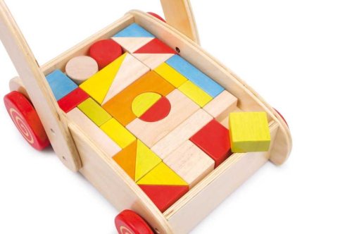 Toto stabilní chodítko je vyrobeno z masivního dřeva a překližky. Různě tvarované kostky (5 cm až 10 cm) jsou vyrobeny z bukového dřeva. Trénuje smysl pro rovnováhu a poskytuje hravou podporu při učení chůze. Rozvíjí motoriku, rozpoznávání barev barev a tvarů. Hrany jsou hladké, zaoblené pro větší bezpečnost. Hlavní vlastnosti: rozvíjí motorikutrénuje smysl pro rovnováhu a rozpoznávání barev a tvarůposkytuje hravou podporu při učení chůze
