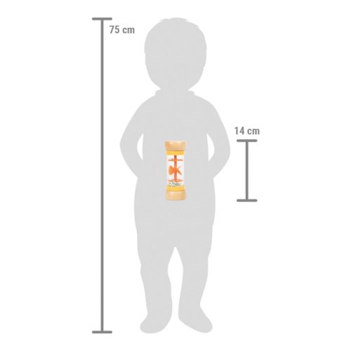 Přesně takhle zní déšť! S dešťovou holí můžete imitovat zvuky jemného deště. Můžete ji použít jako chrastítko nebo rytmickou hračku. Tělo hračky je průhledné, můžete tak pozorovat, jak kuličky padají přes zábrany a rotující vrtuli. Fascinující smyslová hračka pro miminka a malé děti. Vizuálně i akusticky trénuje vnímání a zaručuje dlouhotrvající zábavu. Tahle zvuková hračka je vhodná i jako chrastítko pro nejmenší. Díky kompaktních rozměrů je toto chrastítko do deště také snadno uchopitelné do dětských rukou a je také ideální na cesty. Hlavní vlastnosti: hračka trénuje akustické a vizuální vnímánívhodná také jako chastítko pro nemluvňatauklidňuje smysly dětí i dospělýchideální na cesty