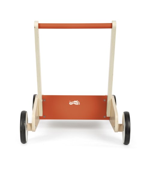Ideální společník pro procházky i hraní. Toto dětské chodítko není jen hračka, ale také perfektní společník pro první krůčky malých dobrodruhů. Díky kombinaci přírodního dřeva a měděně červené barvě je také opravdovým poutačem pro oči v každé školce či pokojíčku. Vyrobeno je z vysoce kvalitního dřeva. Je pevné a praktické, s velkou úložnou plochou, která nabízí dostatek prostoru pro hračky, které doprovázejí Vaše dítě při jeho prvních krůčcích. Díky integrovanému brzdnému systému je manipulace s dětským chodítkem vždy bezpečná a přizpůsobí se vývoji a schopnostem dítěte při chůzi. Díky zaobleným hranám je i bezpečné. Pogumovaná kolečka jsou velmi tichá a také bezpečná. Chodítko má dvě výškově nastavitelné úrovně rukojeti a je tak ideální pro malé i velké děti, a může růst s nimi. Chodítko je vyrobené z laminovaného dřeva. Robustní a stabilní konstrukce pomůže dětem při jejich prvních krůčcích. Chodítko je nejen dokonalou pomůckou pro první krůčky miminka, ale také cvičební pomůckou smyslu pro rovnováhu. Dětská chodítka umožňují dětem hravou formou prozkoumávat své okolí a postupně rozšiřovat rozsah pohybu. Hlavní vlastnosti: ideální společník pro první krůčky Vaší ratolestirobustní konstrukce s brzdovým systémempraktický úložný prostorpogumovaná kola pro tiché a bezpečné ježděnívýškově nastavitelná rukojeť