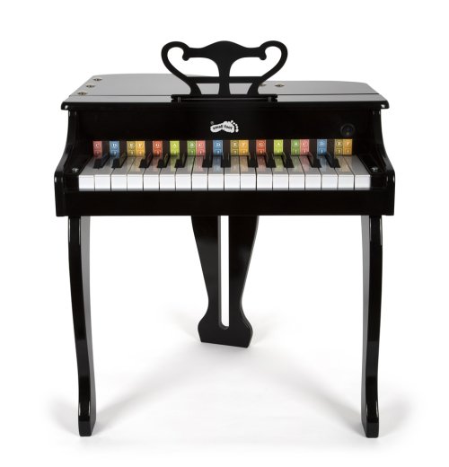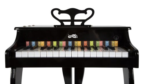 Máte doma malého hudebníka? Pořád si něco brouká, pohybuje se do rytmu hudby, má rytmus v krvi? Možná přišel čas na to, pořídit mu jeho první hudební nástroj. Toto elektronické dřevěné dětské klavírní křídlo v luxusním designu má výbornou kvalitu zvuku a víko lze otevřít stejně, jako u skutečného koncertního křídla. Součástí je pohodlná stolička pro malého klavíristu, stojánek na upevnění not a zpěvník. Noty ve zpěvníku jsou barevně rozlišené a jednotlivé klávesy jsou označeny odpovídajícími barevnými štítky, aby se dětem podle not snadno hrálo. Je potřeba dokoupit 4xAA baterie, které nejsou součástí balení. Nejedná se o hudební nástroj, ale pouze o hračku. Hlavní vlastnosti: luxusní designvýborná kvalita zvukusoučástí stolička, zpěvník a stojánek k upevnění not rozvíjí a podporuje lásku k hudbě 4xAA baterie - nejsou součástí balení