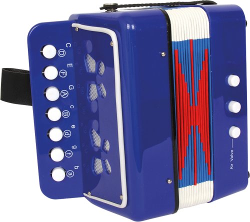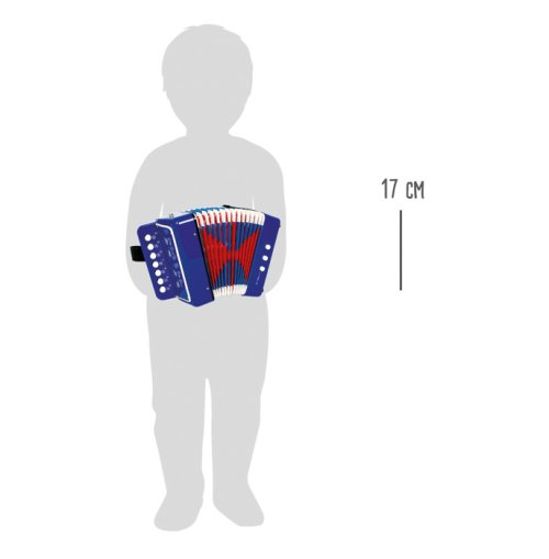 Hrát jako kdysi hrál dědeček. S touto modrou harmonikou mohou děti získat své první hudební zkušenosti a motivuje je k vlastní hudební produkci. Rozvíjí také hudební cit a učí rozeznávat tóny. Motýlci na bocích navíc upoutají pozornost a dodají tomuto dětskému nástroji ještě zajímavější vzhled. Vynikající jako příprava před systematickou výukou hry na skutečný hudební nástroj. Pozor, tato tahací harmonika není skutečný hudební nástroj, proto nemá profesionální zvuk. Hlavní vlastnosti: kvalitní zpracovánívelikost pro nejmenšíprohlubuje lásku k hudbě