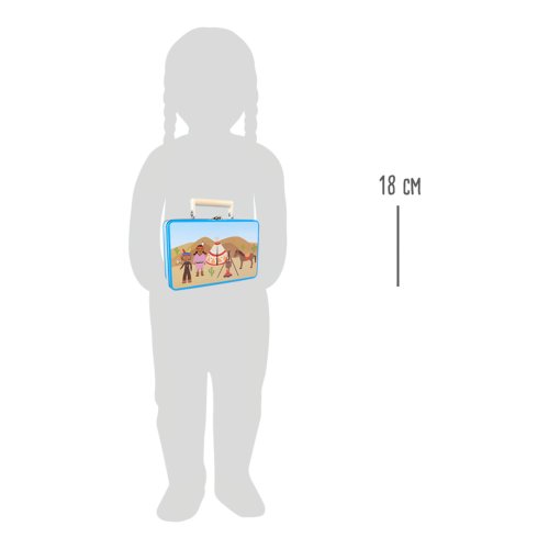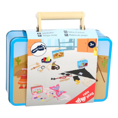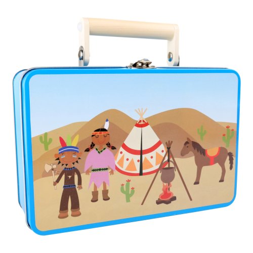 Představte si zvuk bubnů v dálce, pohled na rozlehlé prérie a vzrušení z dobrodružství na Divokém západě. Nyní můžete přenést tuhle magickou atmosféru přímo do dětského pokoje s naším "Small Foot Dětským kufrem - indiánská sada"! Nechte své děti objevovat svět fantazie, kde se stávají hrdými indiány, mistři lukostřelby a statečnými průzkumníky nekonečných plání. Vinnetou by při pohledu na tento kufr zbledl závistí! Každý detail indiánské sady je navržen s láskou a péčí. Plstěná čelenka zdobená třemi pestrobarevnými peříčky, luk a šíp v plstěném toulci, a sekera s nožem zdobené koženými řemínky a korálky– vše je připraveno pro autentické dobrodružství. A co víc? Součástí je i indiánský náhrdelník, který dodá vašemu malému válečníkovi ten pravý šmrnc. Sledujte, jak se oči vašeho dítěte rozzáří, když poprvé otevře tento kovový kufr plný pokladů a stanou se mistrem svého imaginárního světa. Naše indiánská sada, vyrobená s unikátním německým designem, ztělesňuje kvalitu a bezpečnost, abyste vy mohli mít klid na duši, zatímco vaše děti si vytvářejí nezapomenutelné vzpomínky. A navíc, naše láska ke dřevu a závazek k udržitelnosti znamená, že každý kus této sady je krokem k lepší budoucnosti. Sledujte, jak se fantazie vašeho dítěte rozkvétá na pozadí Divokého západu Hlavní vlastnosti: 7 dílů (1 kovové pouzdro, 1 nůž, 1 sekera, 1 řetízek, 1 čelenka, 1 luk, 2 šípy, 1 plstěný šáček)praktický přenosný kufřík