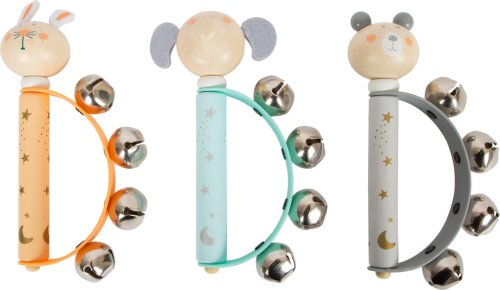 Tamburína pro miminka a kojence se čtyřmi malými zvonečky na pružném plastovém oblouku naučí rytmus! Díky hladkému pocitu z dřevěné rukojeti a malým rozměrům lze tuto dětskou tamburínu snadno uchopit malými ručičkami. Přírodní dřevo v kombinaci s láskyplným designem, roztomilými plstěnými prvky a jemnými pastelovými barvami dělají z tohoto dětského nástroje absolutní poutač a ideální drobný dárek. Podporuje také rozvoj akustického vnímání. Ideální pro kojence a pro ranou hudební výchovu, učení se prvním rytmům nebo rytmické doprovodné hraní na jiné hudební nástroje. Nejedná se o hudební nástroj, ale o hračku. Hlavní vlastnosti: čtyři zvonky na pružném plastovém obloukuhladká dřevěná rukojeť ve velikosti pro dětský úchopvhodné pro ranou hudební výchovu