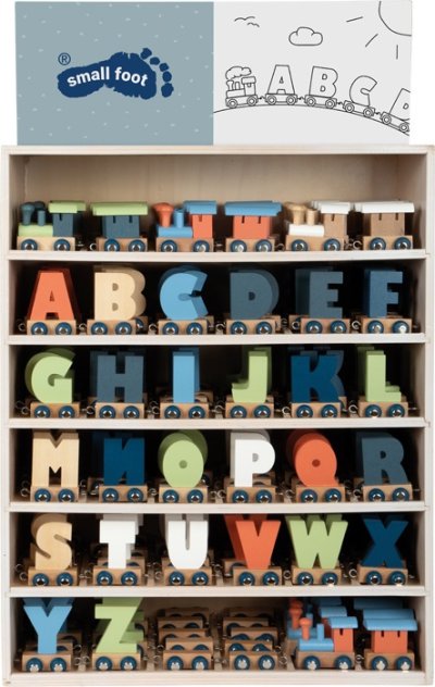 Zábava s polárními písmeny! Tento dřevěný displej zahrnuje dřevěné lokomotivy, vagóny, písmena abecedy, které lze jednoduše spojit do jednotlivých slov. V různých kombinacích můžete sestavovat jména, zkratky jmen nebo slova jednotlivě. Ideální pro malé začátečníky, kteří se formou hry seznamují s písmeny abecedy. Také poslouží jako pěkná dekorace do dětského pokoje. Všechny jednotlivé díly lze samostatně objednat. Hlavní vlastnosti: 180dílný dřevěný displej písmenkových vláčkůmoderní barvy v kombinaci s přírodním dřevempísmena podporují učení abecedyideální dekorace do dětského pokoje nebo dárekzaoblené hrany pro příjemný pocit ze hry