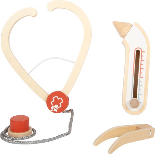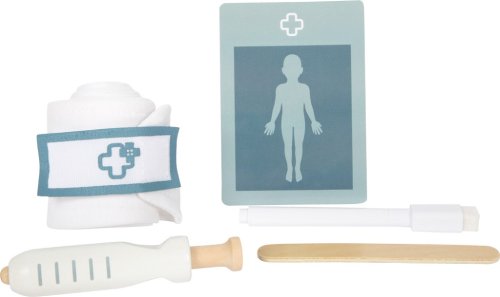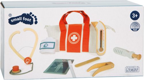 Pro malé lékaře a jejich velké mise! Tato praktická sada pro děti promění každou hru v opravdovou lékařskou návštěvu. Součástí je pevná látková taška se zipem a pohodlnými rukojeťmi, ideální pro přenášení, a bohatá kolekce kvalitních dřevěných hraček: stetoskop, zasouvací injekční stříkačka, teploměr s nastavitelným ukazatelem, pinzeta, špachtle, obvaz se suchým zipem a popisovatelné karty pacienta s fixou. Děti mohou naslouchat tlukotu srdce plyšového medvídka, aplikovat injekci panence nebo měřit horečku - možnosti hry jsou nekonečné. Pohyblivé části, jako zasouvací stříkačka a nastavitelný teploměr, podporují kreativitu a rozvoj koordinace. Taška je lehká a snadno se přenáší, perfektní pro hraní doma, v herně, na cestách nebo ve školce. Realistické prvky povzbuzují děti k objevování pečovatelských rolí, trénování jemné motoriky a zkoušení sociálních dovedností. Sada zároveň rozvíjí řeč, empatii a porozumění lidskému tělu a zdraví. Ideální pro přípravu na skutečné návštěvy u lékaře, nebo prostě pro zábavné hraní rolí s panenkami, kamarády či sourozenci. Hlavní vlastnosti: lékařská taška s rozsáhlým zdravotnickým materiálem ze dřeva obsahuje: injekční stříkačka, teploměr, zapisovatelná karta včetně popisovače, stetoskop, obvaz, špachtle a pinzetaodolná látková taška se zipem - kompaktní a přenosnáideální pro hraní rolí, sociální rozvoj a motorické dovednosti