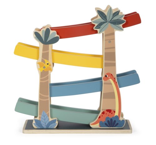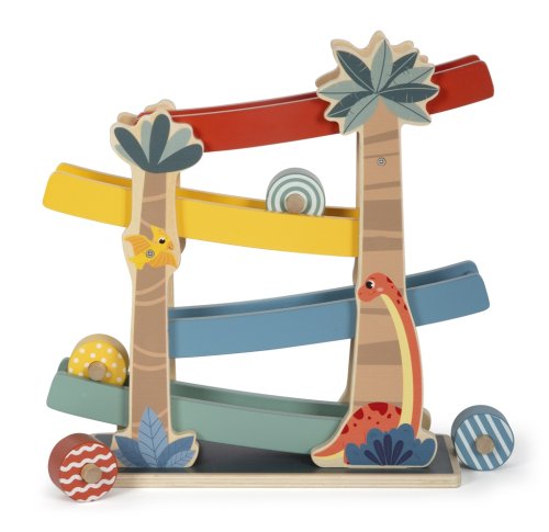 Pevná dřevěná dráha s ilustrací roztomilých dinosaurů je vyrobená z vysoce kvalitního dřeva a přináší zábavu do každého dětského pokojíčku. Dráha má 4 rampy, každou v jiné barvě, a 4 různě barevné vzorované disky, které z rampy nevypadnou a rychle se kutálejí z horního patra až úplně dolů. Pozorujte, jak se mění vzory na discích, když se dají do pohybu. S hračkami z produktové řady "Dino" jsou tématem fascinující prehistoričtí tvorové, kteří upoutají pozornost lidí všech věkových kategorií. Tyto dřevěné hračky podporují rozvoj motorických dovedností, inspirují dětskou kreativitu a představivost a povzbuzují děti, aby se dozvěděly více o přírodě a historii těchto pravěkých obrů. Hlavní vlastnosti: robustní konstrukce se širokou základnourozvíjí představivost a koordinaci ruka-okovzhled přírodního dřeva v kombinaci s barevnými obrázky Značka a certifikát FSC® (Forest Stewardship Council) zaručuje, že dřevo, ze kterého byl produkt vyroben, nebylo vytěženo nelegálně a pochází z lesů obhospodařovaných šetrným či přírodě blízkým způsobem, ve kterém jsou dodržovány přísné environmentální a sociální požadavky. Značka FSC® na výrobku znamená, že svým nákupem pomáháte chránit lesy a podporujete šetrné, odpovědné či přírodě blízké hospodaření, díky kterému jsou naše lesy stabilnější, zdravější, mají přirozenou druhovou skladbu a lépe odolávají negativním následkům klimatických změn.