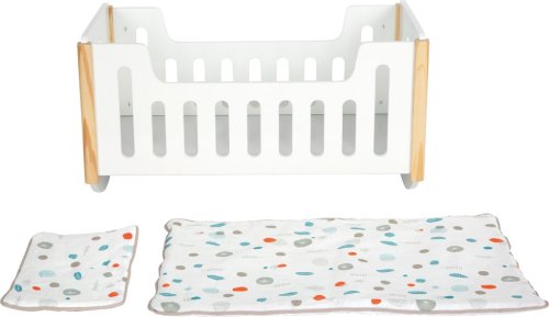 Tato moderní dřevěná kolébka ve skandinávském designu je ideální postýlkou s možností jemného houpání panenek či plyšových zvířátek. Součástí balení je polštář a velká peřinka, které jsou povlečené do barevně neutrálního oboustranného povlečení. Navíc je peřinka dostatečně velká, aby pod ní pohodlně mohly spát panenky nebo plyšáci do velikosti 46 cm. Vysoce kvalitní, stabilní konstrukce, zaoblené hrany, jemné barevné tóny činí z kolébky stylový a kvalitní kousek. Perfektní hračka do každého dětského pokoje. Balení obsahuje: 1x postel, 1x polštář, 1x přikrývka. Hlavní vlastnosti: dřevěná kolébka a postýlka v jednomnadrozměrná dekaoboustranné ložní prádlorobustní konstrukce, kvalitní zpravovánízaoblené hranypro panenky a plyšáky do 46 cmskandinávský design, jemné barevné tóny Little ButtonŘada atraktivního příslušenství pro panenky Little Button nabízí pestrou paletu výrobků, od kočárku přes jídelní židličku až po skříň. Zákazníky snadno zaujmou jednotným funkčním a decentním designem využívajícím přímé linie a střídmé neutrální barvy. Díky tomu spolu mohou vytvořit ucelené harmonické soupravy, které vkusně doplní moderní interiér. Důmyslná konstrukce a kvalitní zpracování pomáhají zajistit vysokou stabilitu, bezpečnost a dlouhou životnost. Založte s jejich pomocí stylový koutek pro panenky, kde mohou Vaše děti rozvíjet svou fantazii a pečovatelské dovednosti.