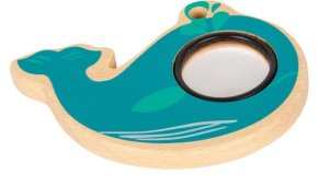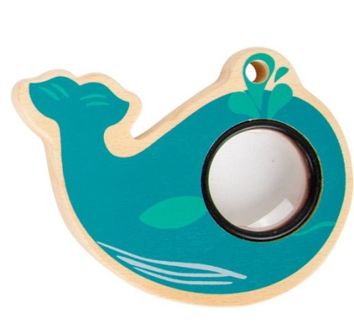 Dětská lupa usazená v dřevěné velrybě. Rozměry hračky jsou cca 9 x 9 x 1 cm. Vhodné pro děti od 18 měsíců.