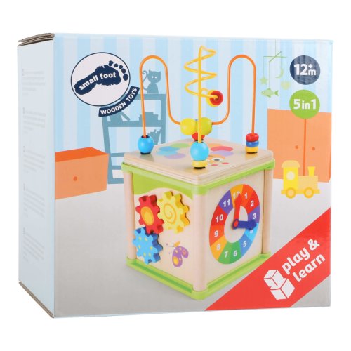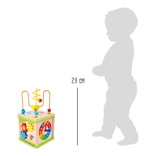 Pokud nemáte ve své herně mnoho místa a není v ní prostor na hraní, je tato multifunkční motorická kostka ideální. S oddělitelným labyrintem, ozubenými kolečky, hodinami a logickou hrou děti hravě trénují jemné motorické dovednosti a jejich soustředění. Hlavní vlastnosti: odnímatelná vrchní část kostky s kovovým labyrintemkompaktní rozměryrozvíjí motoriku dětíveselý barevný design