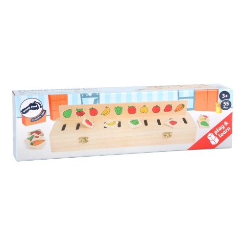 Tato pěkná krabička má 5 zásuvných desek a 50 čtverečků se symboly. Je to dřevěná vkládací hra, která trénuje rozeznávání barev a různých předmětů – oblečení, zvířata, ovoce. Najdete zde ale také geometrické tvary a číslice. Čtvercový dílek s motivem spárujte a poté vhoďte do správného otvoru. Všechny dílky mohou být uloženy do vkládačky, víko je bezpečně uzavíratelné pomocí 2 západek. Hlavní vlastnosti: hra pomáhá s rozpoznáváním tvarů a barevrozvíjí řeč dětívelmi oblíbená hra
