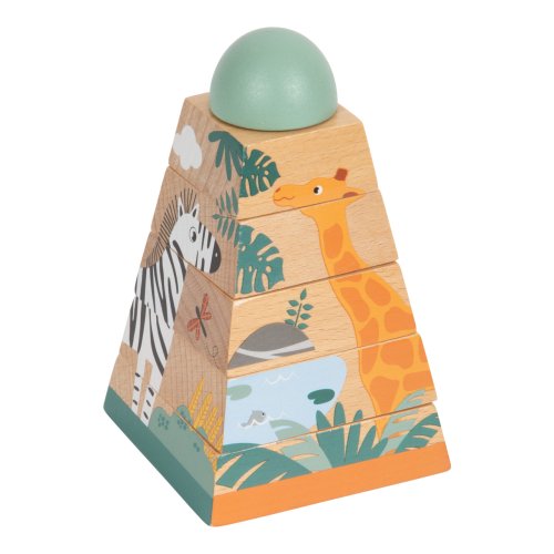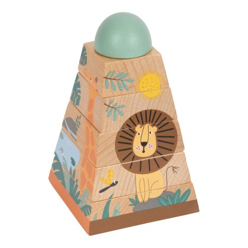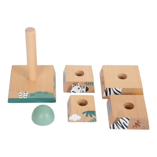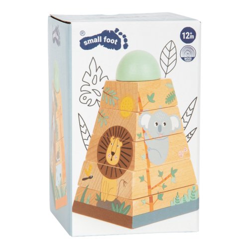 Tato hračka z robustního dřeva je navržena tak, aby rozvíjela jemnou motoriku a prostorové vnímání dětí. Skládáním dřevěných bloků ve správném pořadí vznikne věž, která zobrazuje přátelská divoká zvířata, jako jsou žirafa, zebra a lev, kteří dětem se skládáním pomohou. Sestavení této šestidílné nasazovací věže trénuje koordinaci ruka-oko a odhad velikosti. Je to vzdělávací motorická aktivita a dovednostní hra pro nejmenší děti. Díky své originální barevností vkusně doplní a zútulní dětský pokojíček. Hlavní vlastnosti: nasazovací věž z robustního dřeva6 dílkůmoderní safari design s množstvím přírodního dřevarozvíjí zručnost a prostorovou představivostpři správném sestavení odhalí žirafu, zebru, koalu a lvatrénuje koordinaci ruka-oko a porozumění rozdílným velikostemedukativní motorická hračka