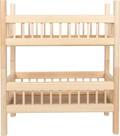 Čas na spaní pro panenky a plyšové kamarády!Tato patrová postel pro panenky z odolného přírodního dřeva nabízí dvojnásobný prostor pro spánek. Lze ji použít jako patrovou postel, nebo ji snadno rozdělit na dvě samostatná lůžka. Díky zaobleným hranám, kvalitnímu zpracování a velikosti vhodné pro panenky a plyšové hračky do 39 cm je ideální volbou pro malé rodiče. Součástí je i pohodlné ložní prádlo – velké deky, polštáře a prostěradla, které zajistí panenkám útulné místo pro odpočinek. Tato variabilní postýlka se snadno přizpůsobí každé hře. Jako patrová postel přináší zábavu na dvou úrovních, jako dvě samostatné postele umožňuje hru s více panenkami najednou. Přirozený vzhled a jednoduchý design z ní dělají stylový a nadčasový doplněk do dětského pokoje. Hraní na uspávání a péči o panenky podporuje rozvoj empatie, sociálních dovedností i porozumění každodenním situacím, děti tak přirozeně napodobují svět dospělých. Hlavní vlastnosti: postel pro panenky 2 v 1 lze používat jako dvě samostatné postele nebo složit jako patrovou postel vyrobena z pevného přírodního dřeva zaoblené hrany pro bezpečné používání dětmi včetně ložního prádla - 2 extra velké přikrývky, 2 polštáře a 2 prostěradla vhodná pro panenky a plyšové hračky do velikosti 39 cm podporuje sociální a kreativní hraní rolí ideální doplněk k nábytku pro panenky