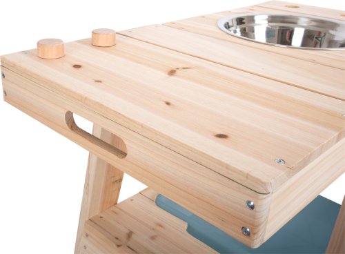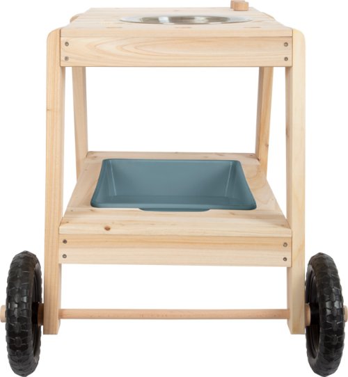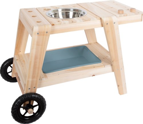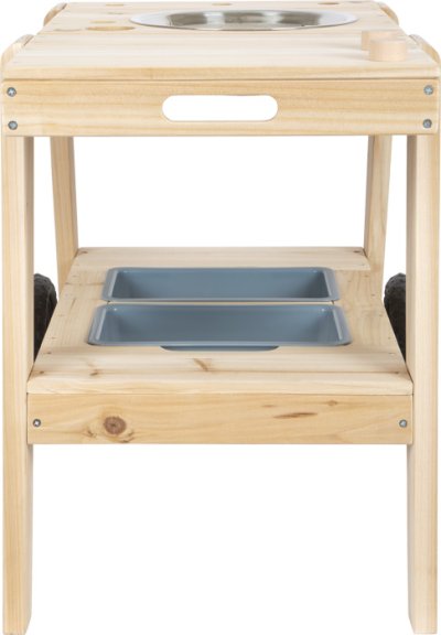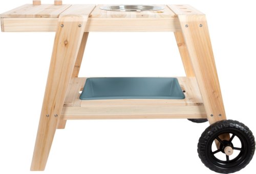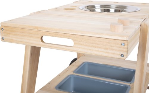 Máchání, vaření a stavění z vody a písku! Tato venkovní „letní“ kuchyňka na hraní je ideální na malou zahradu, terasu nebo balkon. I přes kompaktní rozměry nabízí kuchyňka dostatek prostoru pro kreativní hru. Dodává se se dvěma odnímatelnými miskami, které dokážou rozehrát celý stavební a kulinářský proces. Varná deska je opatřena otočnými knoflíky a řadou otvorů, které můžou posloužit například jako otvor pro vodní hadici. Díky robustním kolečkům lze kuchyňku snadno přemisťovat. Hodí se jako doplněk nebo alternativa pískoviště a k výrobě nejroztomilejších „pískových“ báboviček a dalších pochoutek. Hlavní vlastnosti: ideální pro malou zahradu, terasu nebo balkonpraktické zapuštěné otvory pro hračky na písek či hadici na voduopatřeno kolečky, snadno přemístitelnéneošetřené dřevo vhodné k osobitým úpravám a lakování