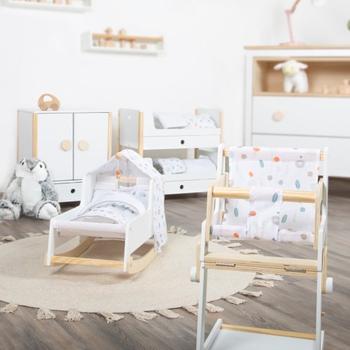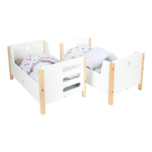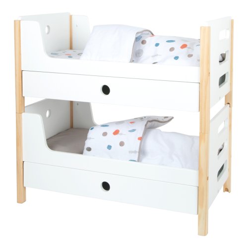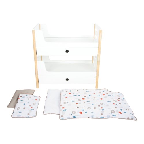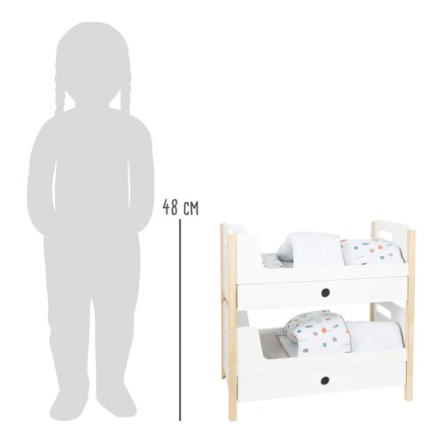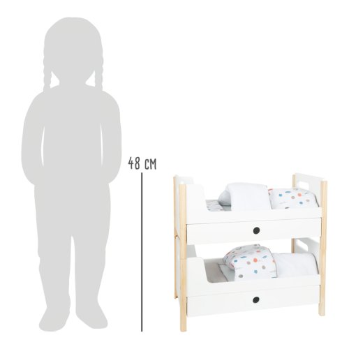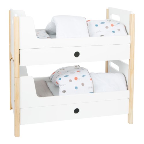 Krásná poschoďovka! Nadchne vás funkcí i skandinávským designem, díky kterému se pěkně vejde do každého dětského pokoje. Je moderní, oboustranná, má genderově neutrální povlečení a oversized peřiny, ve kterých se krásně vyspí panenky a plyšáci do 46 cm. Poskládáním postelí na poschoďové se na jedné straně vytvoří žebřík. Šuplíky pod každou z postelí jsou perfektní k uložení doplňků panenek. Vysoce kvalitní, stabilní konstrukce, zaoblené hrany, viditelně ze dřeva... Perfektní hračka do každého dětského pokoje. Hlavní vlastnosti Můžete použít jako jednolůžka nebo poschoďovou postelŠuplíky pro uložení doplňků panenekGenderově neutrální povlečeníOversized peřinyZaoblené hrany, viditelně dřevěnáPro panenky a plyšáky do 46 cmSkandinávský lineární design Little Button Řada atraktivního příslušenství pro panenky Little Button nabízí pestrou paletu výrobků, od kočárku přes jídelní židličku až po skříň. Zákazníky snadno zaujmou jednotným funkčním a decentním designem využívajícím přímé linie a střídmé neutrální barvy. Díky tomu spolu mohou vytvořit ucelené harmonické soupravy, které vkusně doplní moderní interiér. Důmyslná konstrukce a kvalitní zpracování pomáhají zajistit vysokou stabilitu, bezpečnost a dlouhou životnost. Založte s jejich pomocí stylový koutek pro panenky, kde mohou Vaše děti rozvíjet svou fantazii a pečovatelské dovednosti.