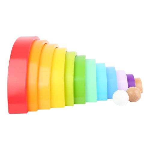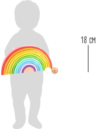 Barevná zábava zaručena! Duha včetně 2 dřevěných kuliček je vyrobena z odolného dřeva v pestrých barvách. Složená duha patří na každou polici v pokojíčku, má mnoho variací skládání a hraní. Z duhy lze vytvořit také dráhy pro kuličky, vysoká věž nebo houpačka pro plyšáky. Je všestranná a podporuje tvořivost dětí. Která barva je nejkrásnější? Hlavní vlastnosti: Rozvíjí motoriku dítětePoužívá se v MontessoriKvalitní zpracování dřeva