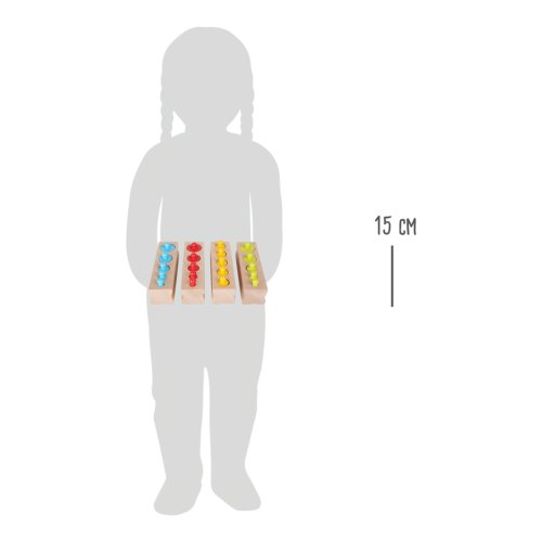 Tato pestrobarevná logická hra povzbuzuje děti k porovnávání, organizaci, počítání, měření a strukturování. Tato hračka z masivního dřeva se vyznačuje svou jednoduchostí a zřetelností. Procvičuje jemnou motoriku a pomáhá dětem v rozvoji jejich vnímání, inteligence a osobnosti. "Pomozte mi to udělat sám!" je přesně to, co doporučuje Montessori pedagogika! Hlavní vlastnosti: rozvíjí logické myšlenídřevěná hračka