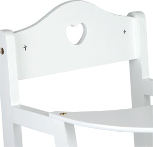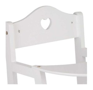 Tato jednoduchá dřevěná jídelní židlička rozbuší srdce všech panenek. Natřená bílou barvou a zdobená malým výřezem srdce je stylovým doplňkem, dětského pokojíčku. Díky svému neokázalému stylu se tato jídelní židlička ideálně hodí do dětských pokojů, ale také do obývacích pokojů. Hlavní vlastnosti: podporuje aktivní hraní a rozvoj sociálních dovedností stabilní konstrukce, kvalitní zpracovánívhodná i do školek