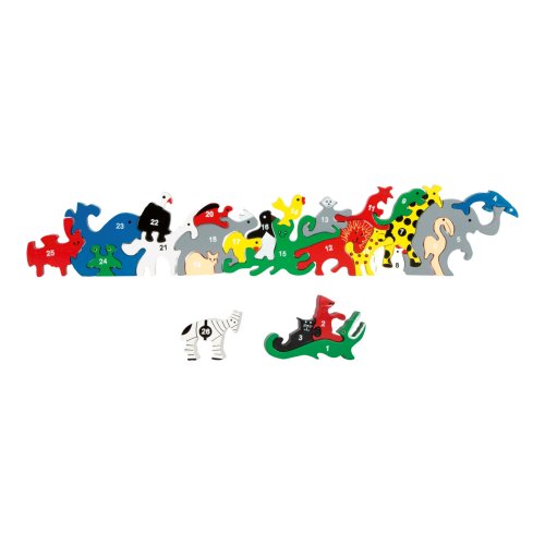 Kdo dokáže seřadit dřevěná zvířátka do správného pořadí? Dřevěné díly ve tvaru zvířat jsou výzvou pro všechny nadšence skládaček. Čísla 1-26 na jedné straně a abeceda na druhé straně pomůžou při skládání. Hlavní vlastnosti: obsahuje 26 zvířátekčísla na jedné straně a na druhé abeceda