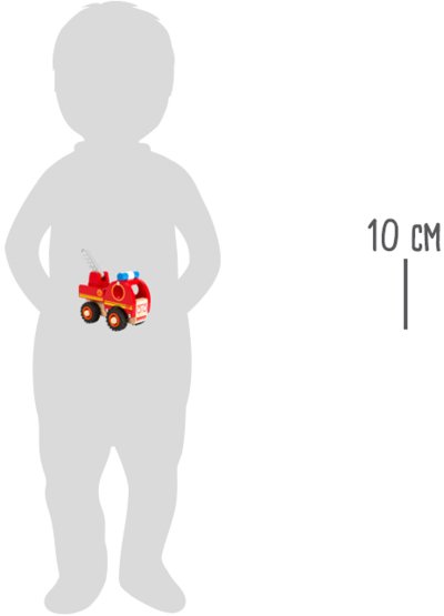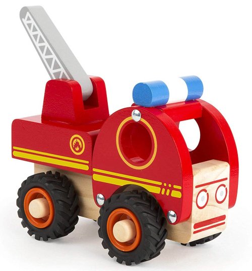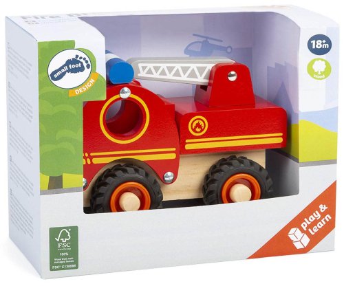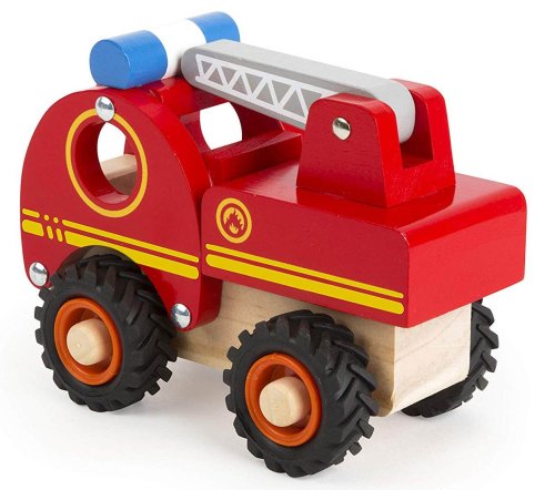 Dřevěné autíčko je vyrobeno z tvrdého masivního dřeva. Hasičské auto má pohyblivý žebřík a gumová kolečka.